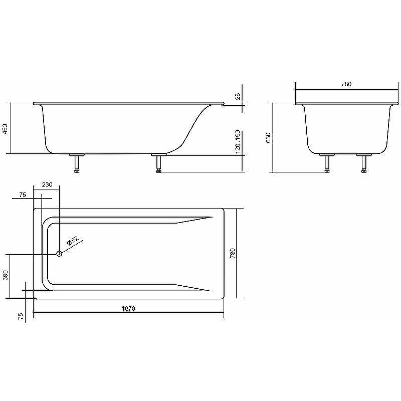 размеры ванны (см)Размером170x80